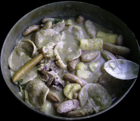 Este tipo de sopa constituye uno de los afrodisiacos más populares de la región, su preparación una combinación exótica por excelencia de ingredientes propios de la zona, entre los que se destacan cangrejos rojos y negros, cola de cerdo, tortillas de harina de maíz, ñame, papa y especias.