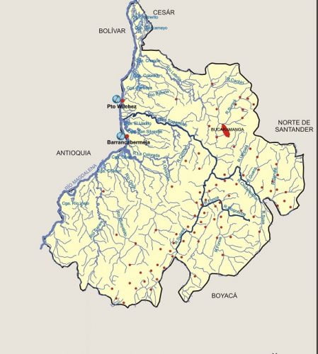 Este es el mapa de los ríos de Santander, en él podrás encontrar todos los ríos que bañan el departamento santandereano.
